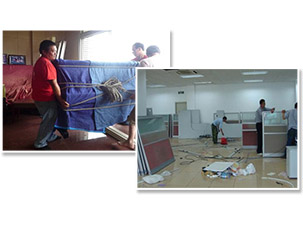 到達目的地后鋪設地板保護材料后開始工作;電器類按要求接通電源及其他線路。